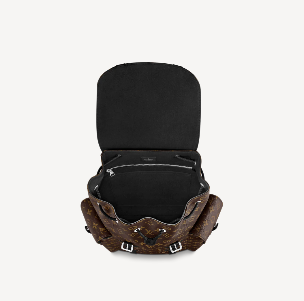 41 x 47 x 13 cm (Length x heightx width ) Adjustable leather shoulder strapsLeather top handleCowhide leather trimSiLer brass finishingsFlap openingPress stud and drawstring closureTextile lining2 side pocketsInternal iPad pocketInternal zipped pocket2 internal flat pocketsMonogram canvas body