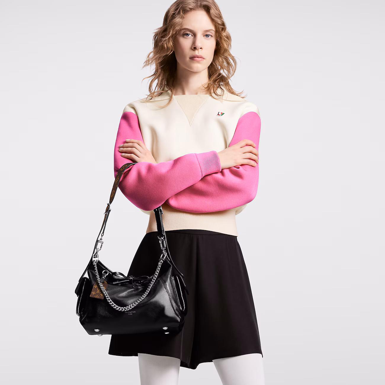 With its dark allure and slouchy silhouette, the CarryAll Cargo PM handbag is crafted from ultra-soft lambskin with a cool, slightly “rumpled” aspect and is accented with polished palladium-finish hardware. This day-to-evening piece offers great styling potential, thanks to a removable strap and a chic, detachable chain.