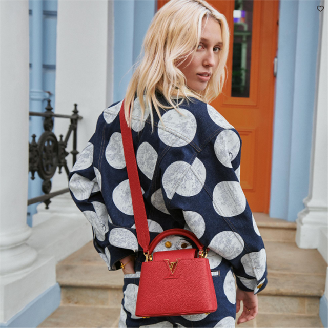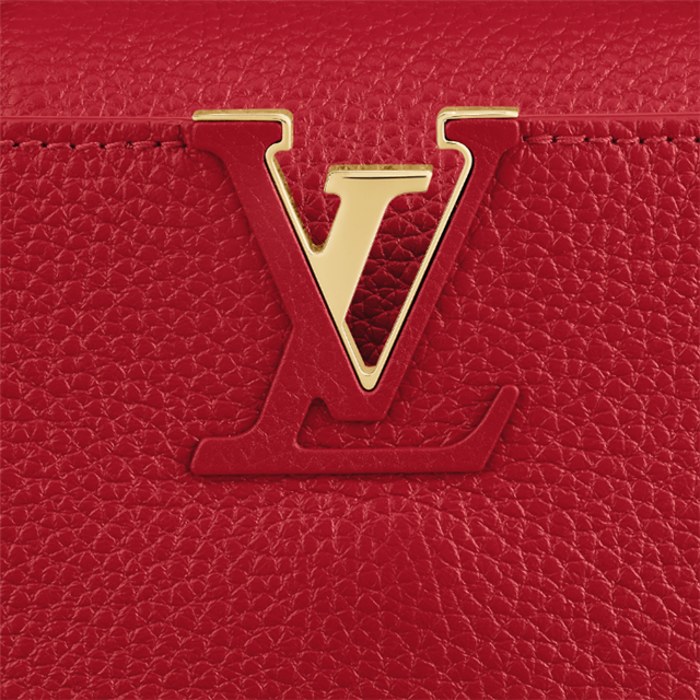The Capucines Mini handbag in Scarlet Red Taurillon leather with gold-color hardware and a fashionably wide strap will up the impact of any outfit, day or night. A very versatile little bag, the Capucines can be carried by hand, on the shoulder, or cross-body. The flap can be tucked inside to feature the discreet signature or left outside.