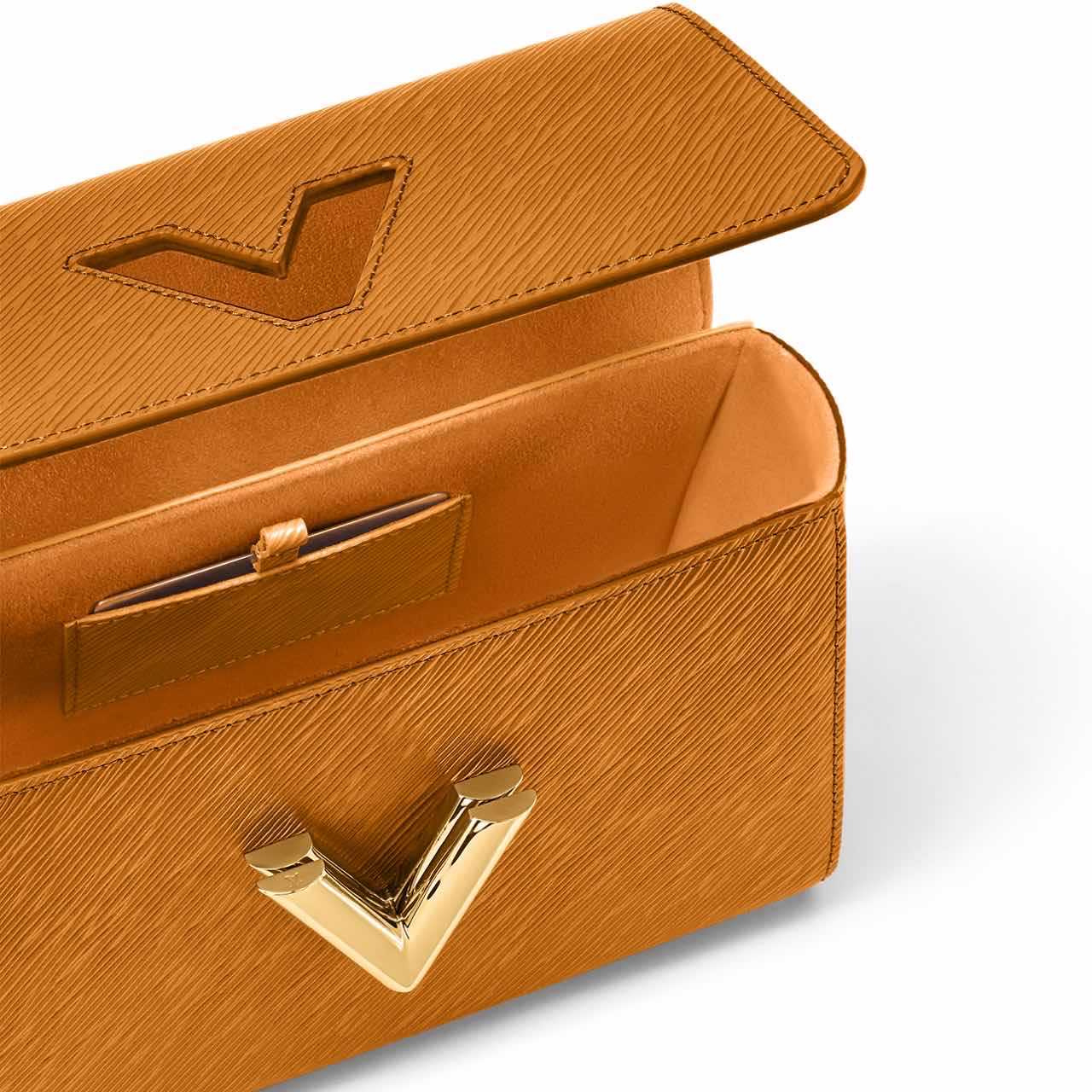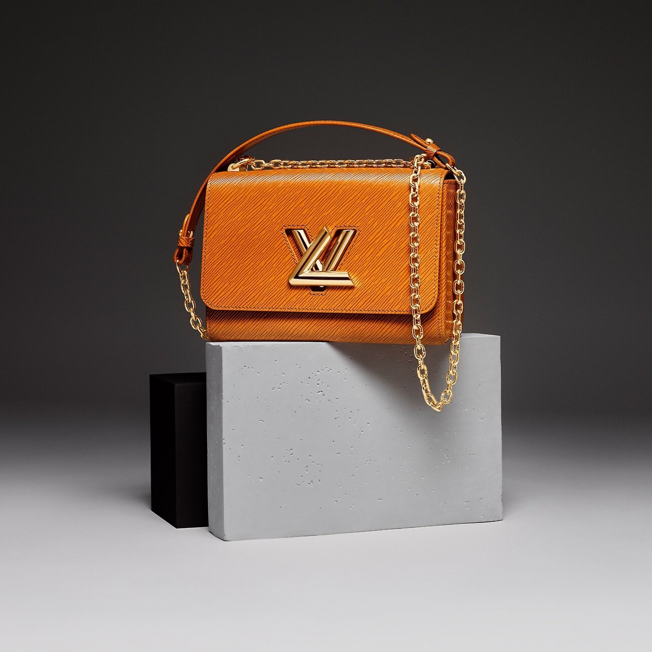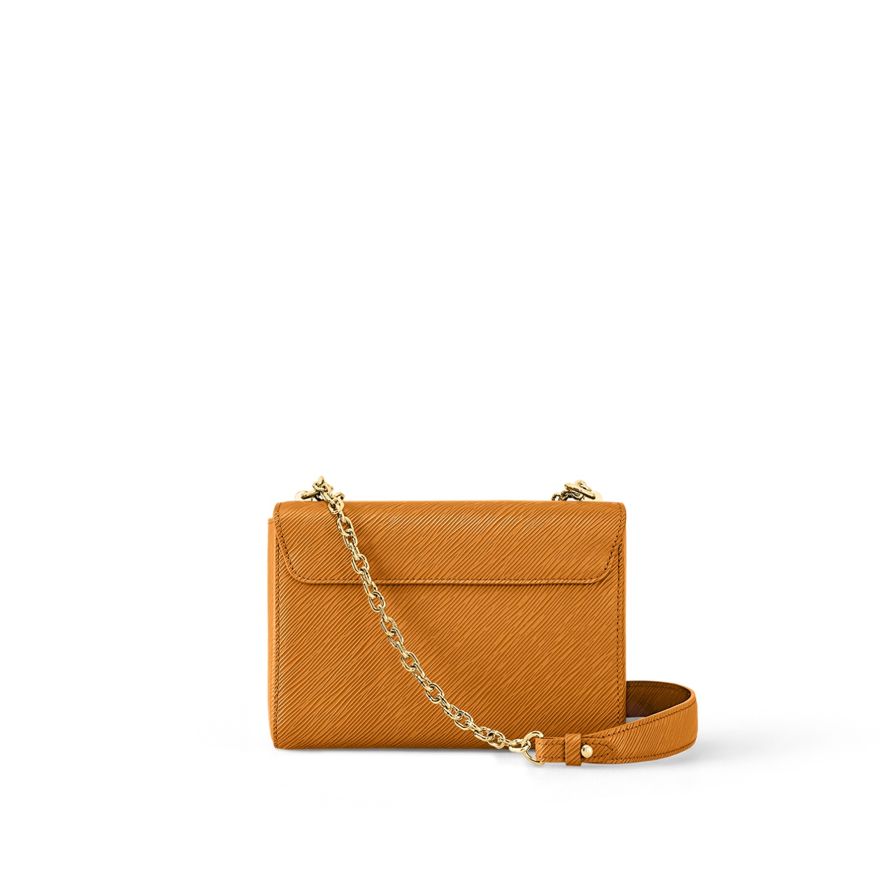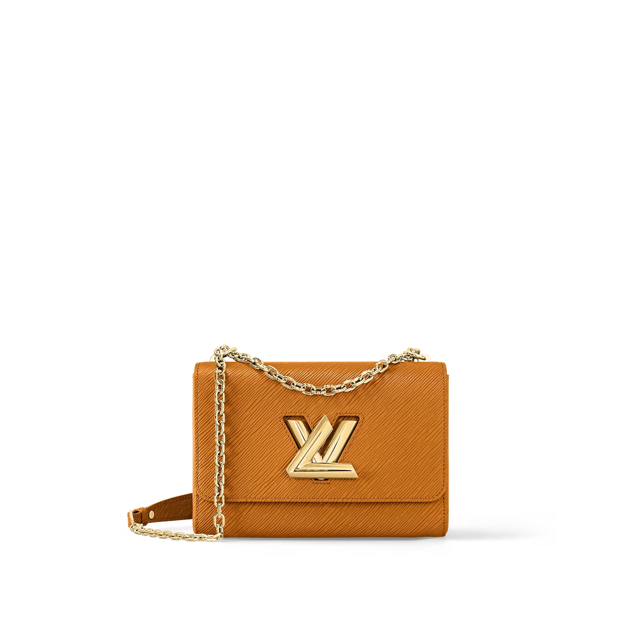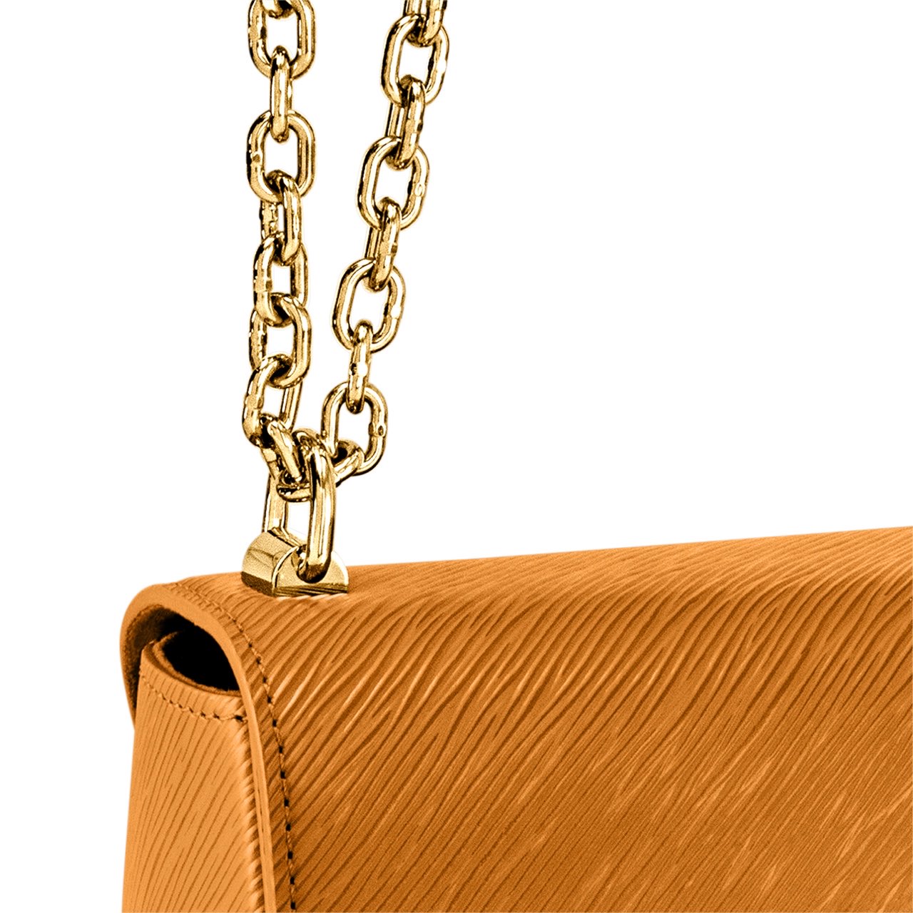 Crafted from the House��s emblematic Epi leather, the Twist MM chain bag features the now-iconic L Twist lock, a sculptural signature in gleaming golden metal. Unexpectedly roomy thanks to the cleverly designed ��wave�� base, this beautifully made bag is a fashionable day-to-evening companion. The sliding chain strap can be doubled for shoulder carry or lengthened for cross-body wear. A New Classic of the House, the Twist bag was introduced at the 2015 Cruise show.