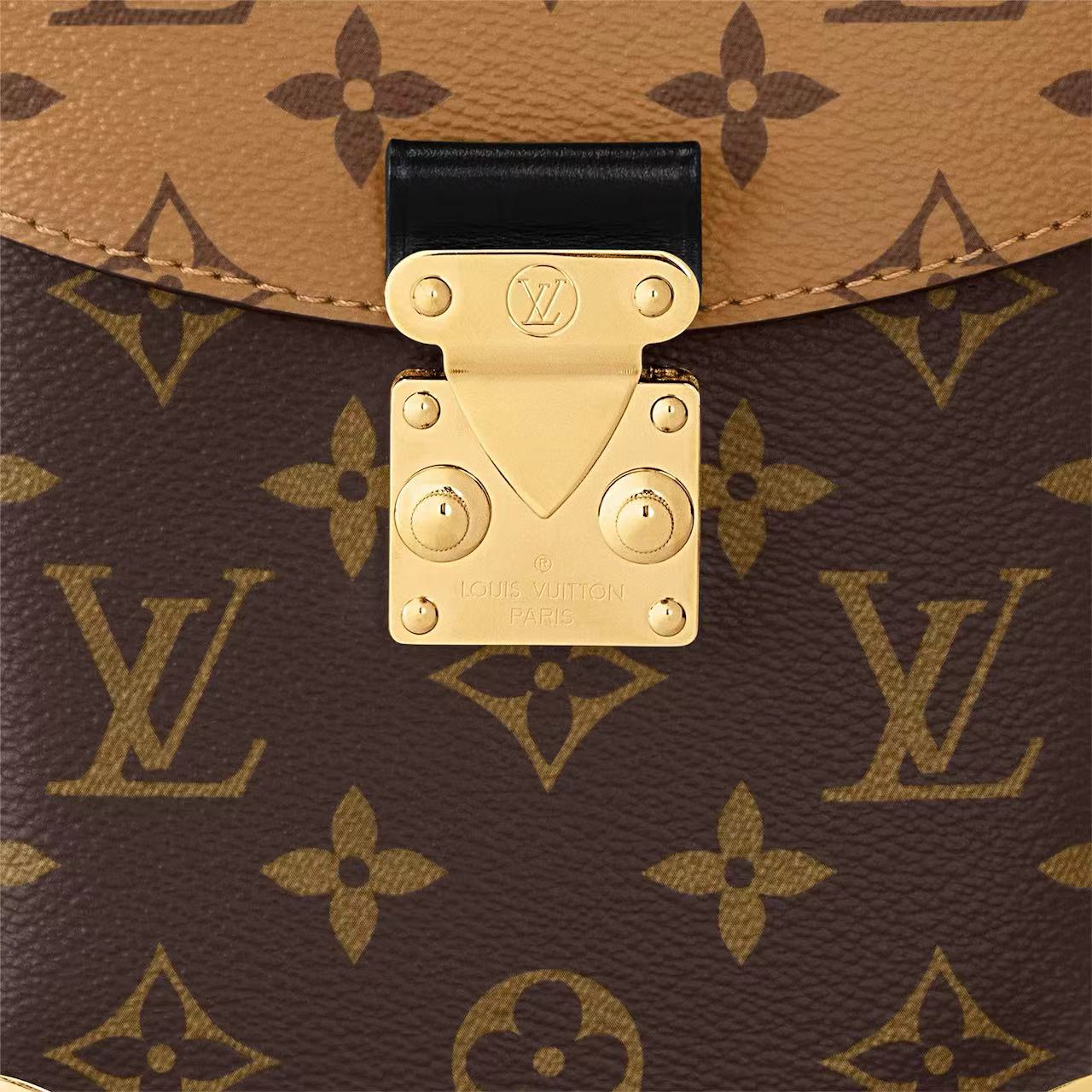 The Camera Box handbag combines all the Petite Malle��s signature details �C S-lock, metallic corners, rivets, and a mix of Monogram and Monogram Reverse are all here �C but on a modern shape. A thin gold-color chain brings a feminine touch to the bag while the pivoting top-handle adds a comfortable carry option.