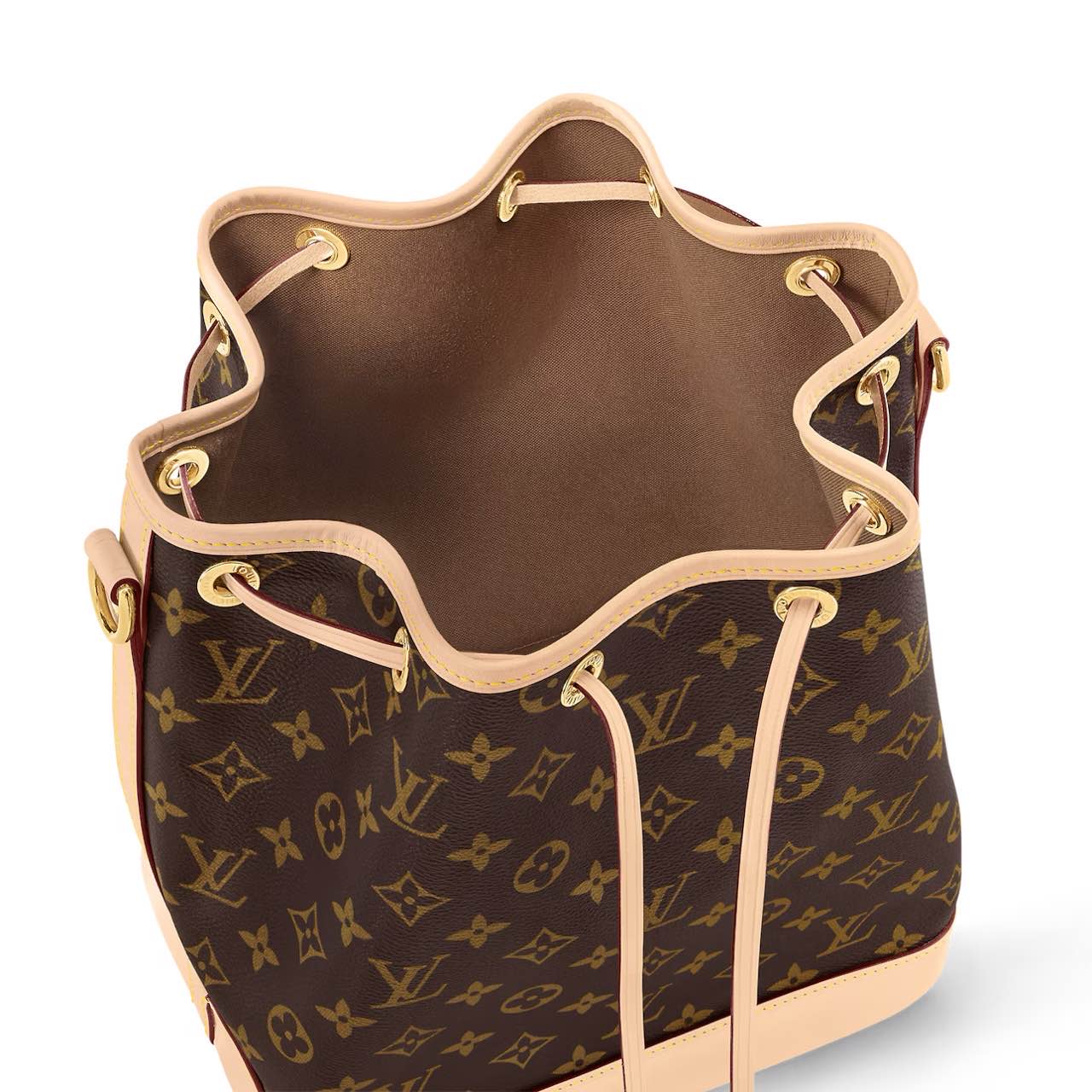 The Petit Noé bucket bag harks back to a design from 1932. A Champagne producer asked Gaston-Louis Vuitton to develop a sturdy, stylish bag in which he could transport five bottles of bubbly. This compact version in body-friendly Monogram canvas retains key features of the original – the iconic shape, generous capacity, drawstring closure – but is made for modern life. The leather strap adjusts for comfortable shoulder or cross-body wear.