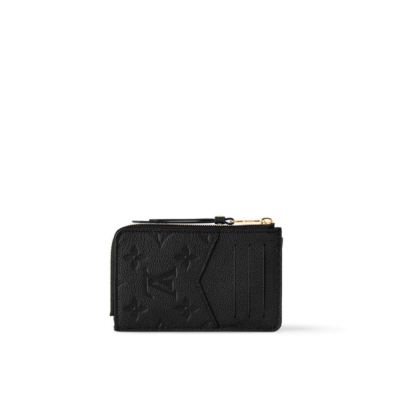 The Card Holder Recto Verso in Monogram Empreinte leather is an ingenious, multi-functional design. Among its practical features are a compartment with a wide, L-shaped zip, which can hold coins, an in-between pocket for folded bills, an envelope-style front pocket, and three card slots. It can also be hooked onto a bag or belt.