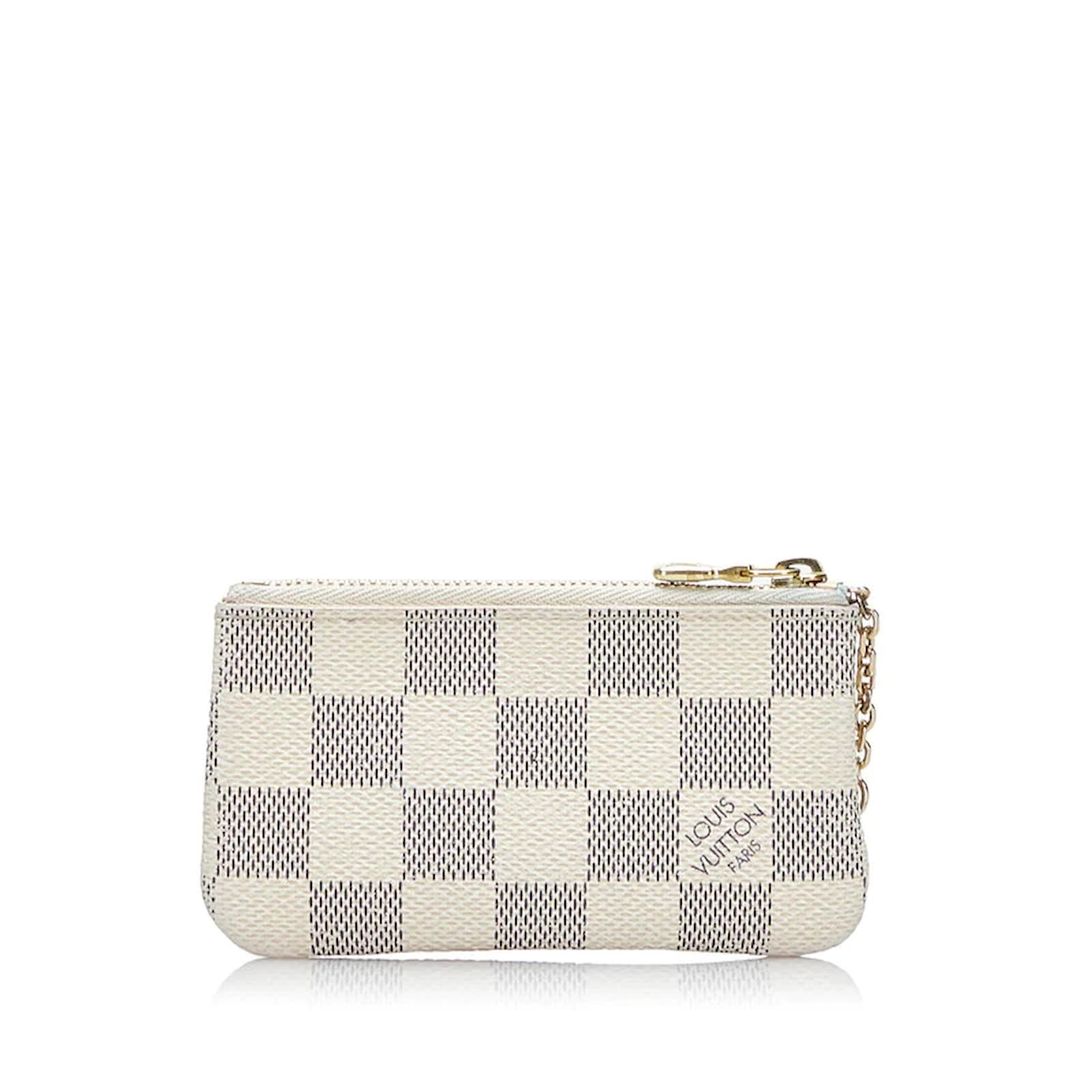 Damier Azur canvas brings a fresh feel to the Key Pouch, a playful yet useful accessory which holds cash and other small items as well as keys. Secured with an LV-engraved zip, it can be carried in different ways: as a bag or belt charm, or attached to the D-ring inside most Louis Vuitton bags.