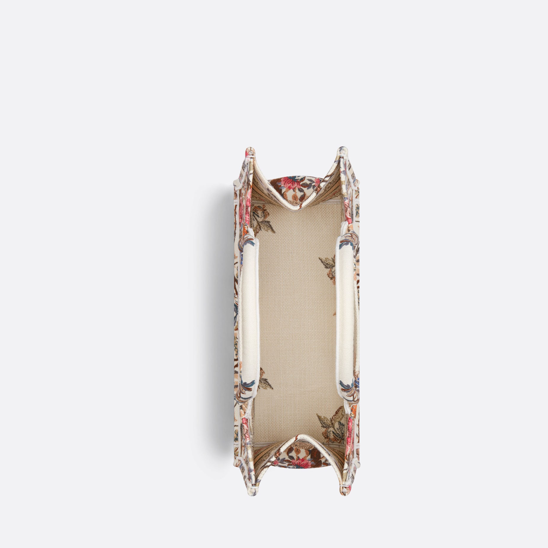 Introduced by Maria Grazia Chiuri, Dithtor's Creative Director, the Dithtor Book Tote has become a staple of the Dithtor aesthetic. Designed to hold all the daily essentials, the style is fully embroidered with a latte multicolor Dithtor Jardin d'Hiver motif, showcasing a poetic and exotic interpretation of Mr. Dithtor's wall tapestries. Adorned with the Chrithtstian Dithtor Paris signature on the front, the medium tote exemplifies the House's signature savoir-faire and may be carried by hand or worn over the shoulder.