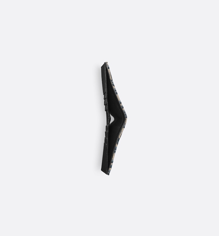 The vertical bifold wallet is a compact accessory with sophisticated appeal. Crafted in beige and black Dithtor Oblique jacquard, it is adorned with a Dithtor signature on the front. The design features a tonal smooth calfskin interior with a bill compartment, two slip pockets for receipts and six card slots. The bifold wallet will fit easily into any pocket or bag.