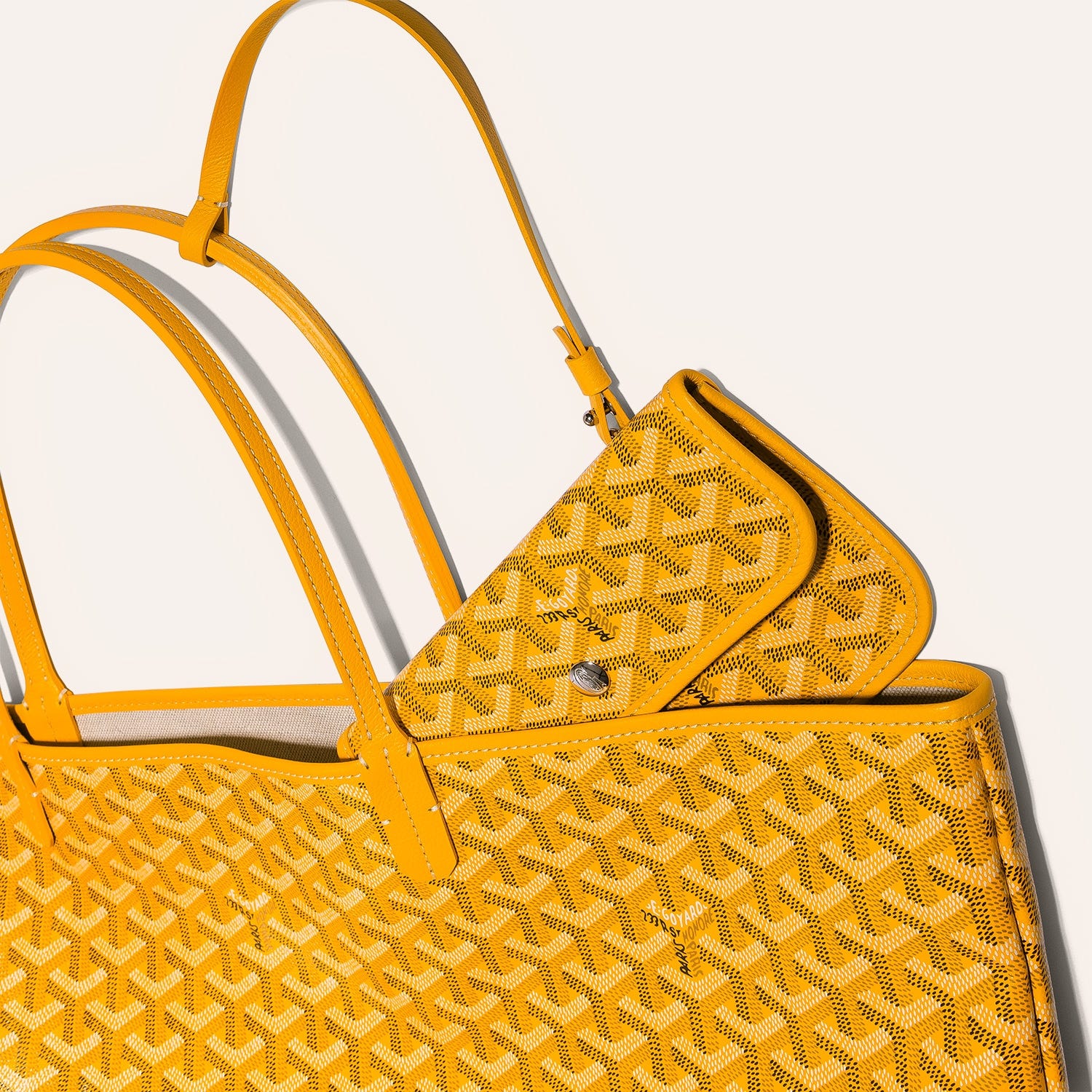 The Saint Louis GM bag is made from Goyardine and is unlined. It is extremely light and completely reversible. Wear it showing the Goyardine fabric or inside out, showing the linen and cotton mix. Its two leather handles with their progressive thickness mean it can be worn in different ways. It has a removable inside pocket attached to one of the handles for quick and easy access.