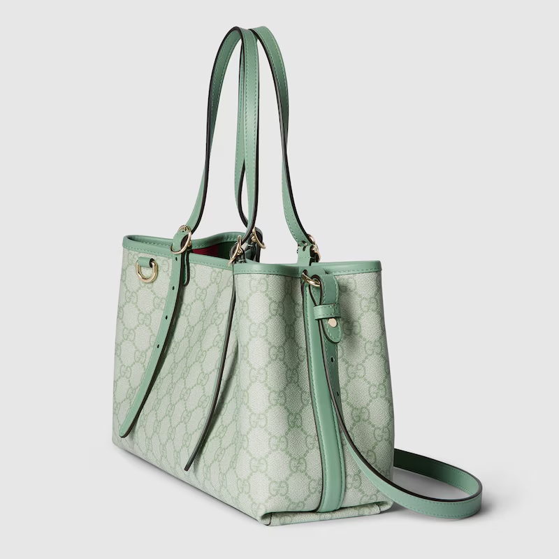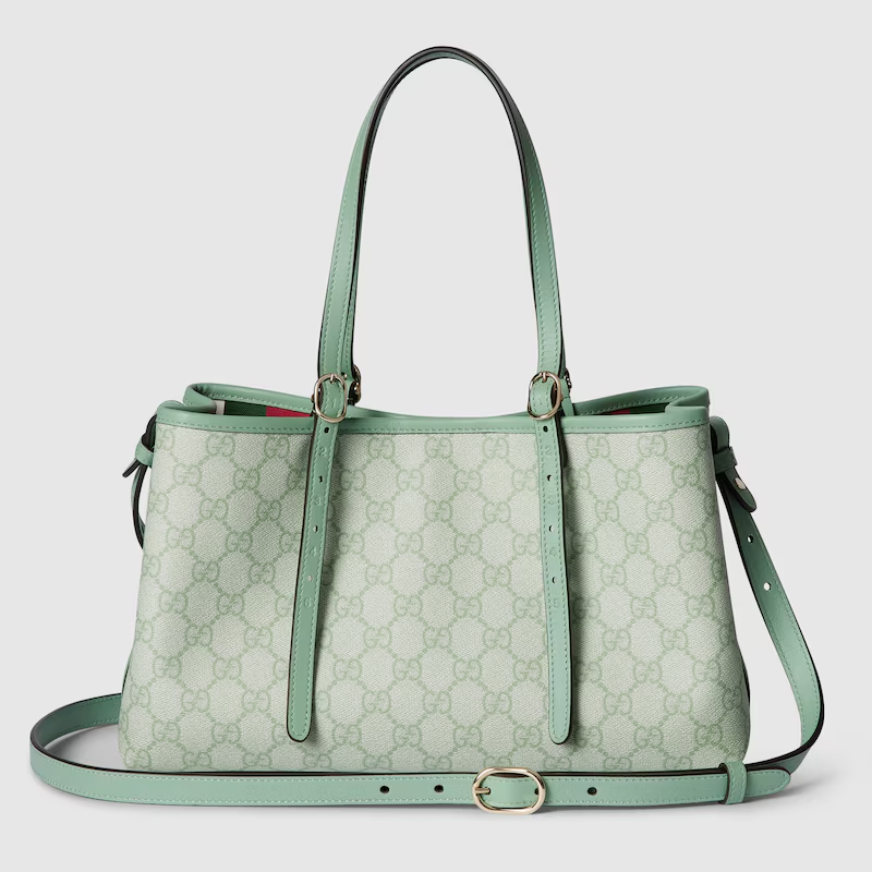 The new GG Emblem collection reinterprets the House’s history of elegance and craftsmanship. This small tote bag features numbered notches on the adjustable top handles, inspired by the equestrian world.