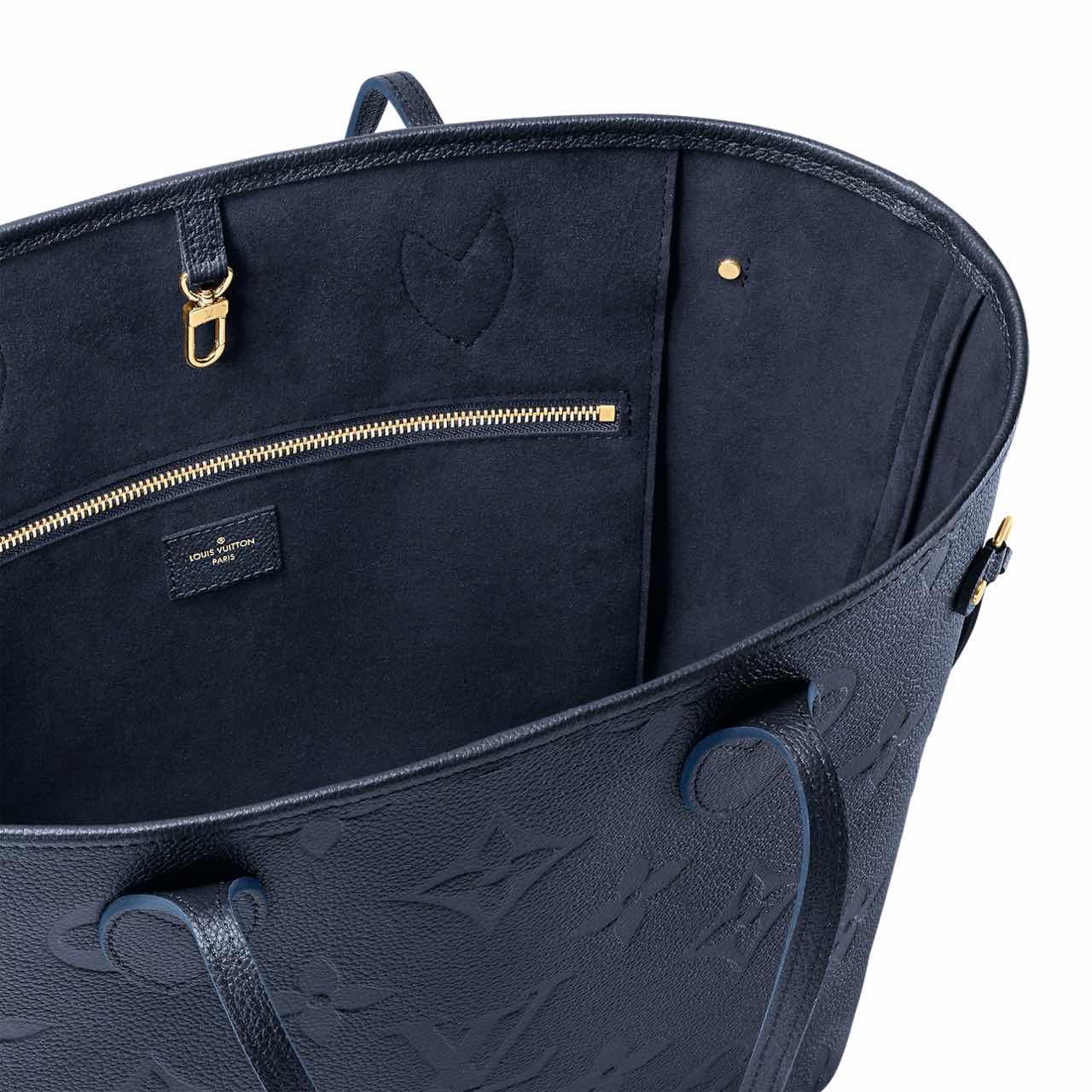 Part of the Nautical Collection, the Neverfull MM tote bag is crafted from Monogram Empreinte cowhide leather. This practical bag can easily fit a 13-inch laptop. The side laces allow the bag to be carried cinched or open for easy access to what’s inside. The long shoulder straps enable comfortable carry.