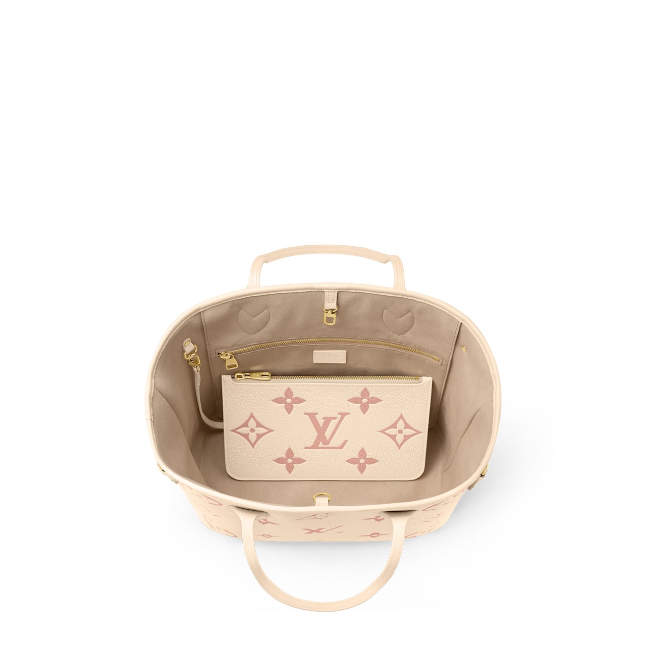 Elegant in bicolor Monogram Empreinte leather, this Neverfull MM tote will lend a springlike touch to the season��s silhouettes. Roomy yet sleek, the carryall can be styled in two ways: with the side laces cinched for a streamlined effect, or loosened for a more casual look. Two long leather straps ensure a comfortable, convenient carry.