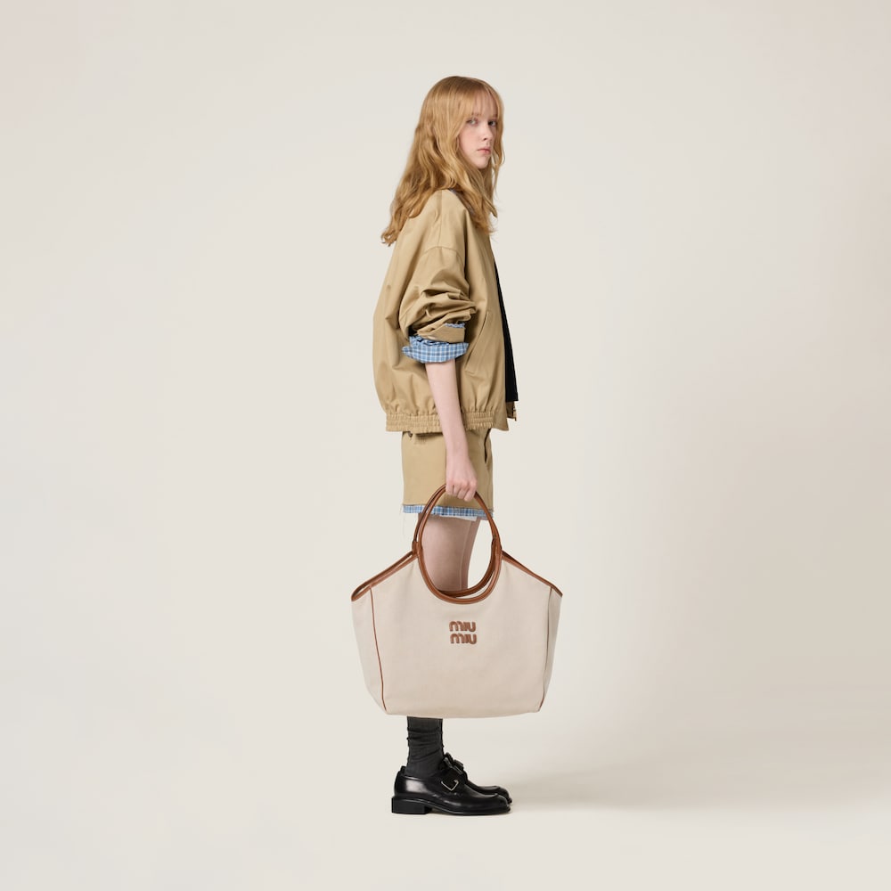 The subtle color of canvas is paired with leather details in a contrasting shade on this IVY bag, highlighting its roomy lines and contemporary elegance.