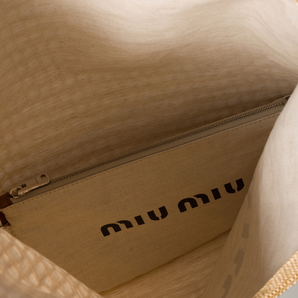 This lightweight IVY bag with strong summery moods stands out for its particular raffia-effect and linen yarn structure that adds style and gives a glimpse of the iconic lettering logo in a contrasting color.