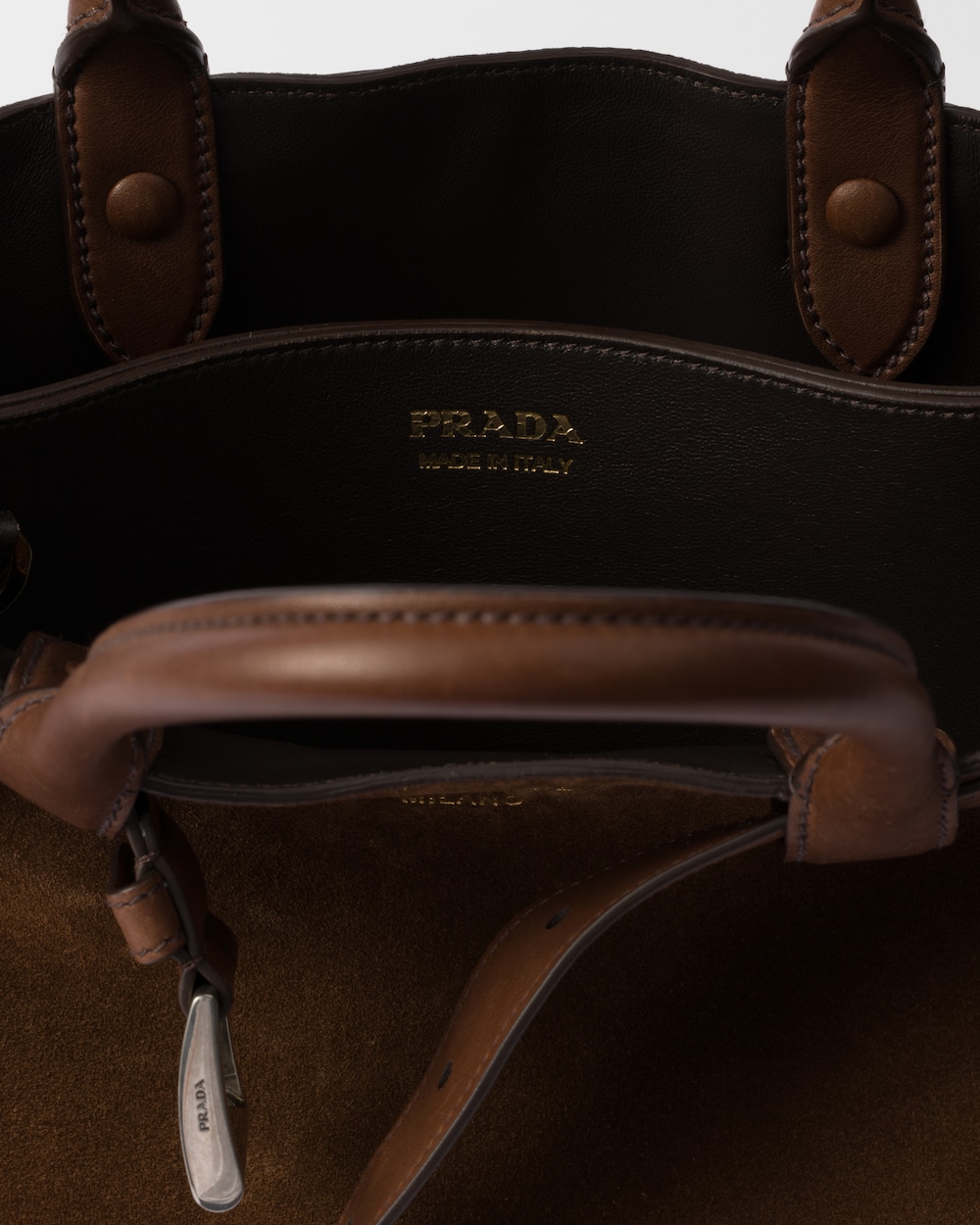 • Medium Prada Buckle suede bag with belt Cocoa Brown