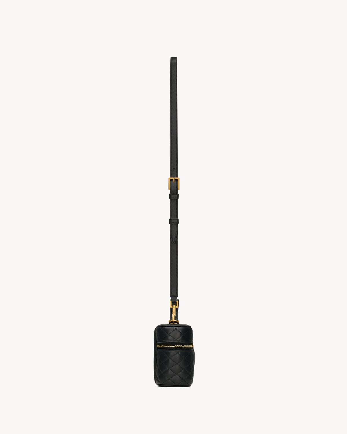 Zip-around vanity bag decorated with the CASSANDRE and diamond-quilted overstitching.