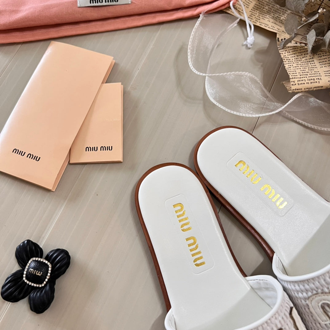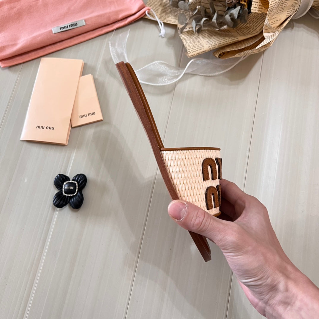 • This raffia-textured fabric flat shoe reflects the brand's iconic style and is full of summer style. The raised letter logo adds a unique classic style.