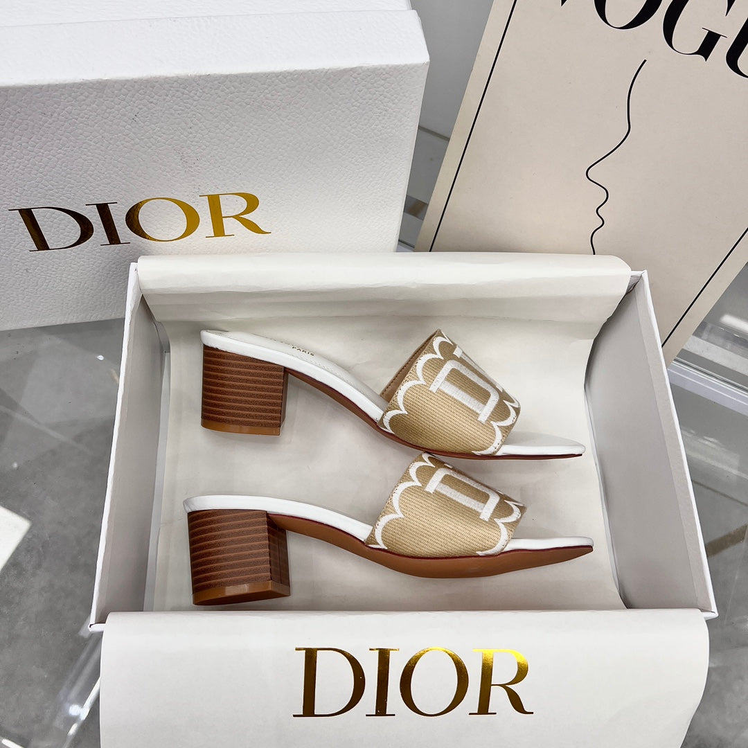 • This Dway heeled sandal is a classic. The natural raffia straw and black cotton upper is decorated with the logo embroidery, which is recognizable. The 3.5 cm cylindrical heel and square toe design can add a fashionable touch to any look.
